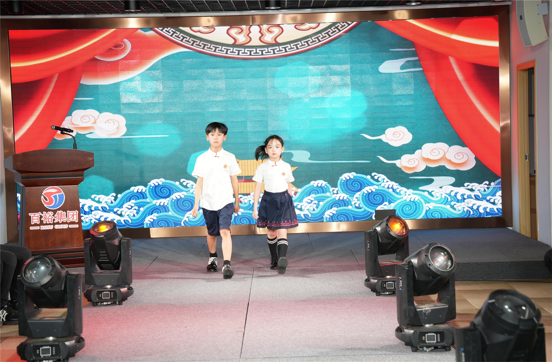 全國學(xué)生服飾南方研發(fā)中心2024年新品發(fā)布會在一群活潑可愛的小模特身穿特色系列校服走秀下,推向活動的高潮,現(xiàn)場贏得陣陣掌聲。