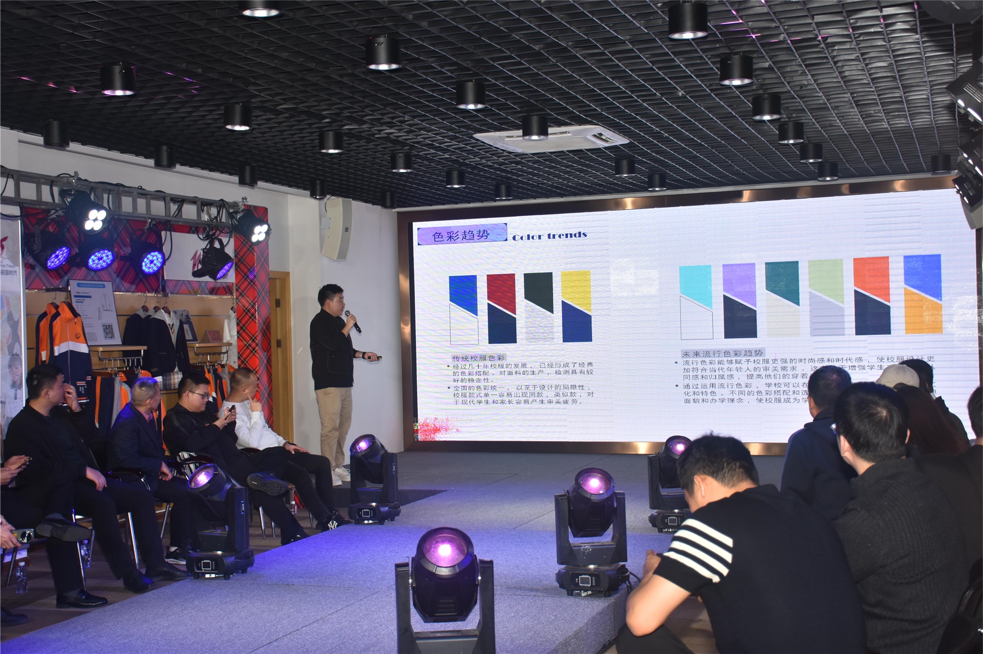 全國學(xué)生服飾南方研發(fā)中心致力于校服文化與功能的研究,款式設(shè)計等。以提升整個行業(yè)品牌推動創(chuàng)新為使命,繼而引領(lǐng)校服產(chǎn)業(yè)的升級,打造中國校服的特色,推進(jìn)中國校服走向世界,弘揚(yáng)中華民族文化,鑄造民族品牌。研發(fā)中心副總經(jīng)理余朝陽從色彩趨勢、結(jié)構(gòu)趨勢、面料趨勢、科技輔料、文化運(yùn)用等方面分享本次新品校服的設(shè)計理念。
